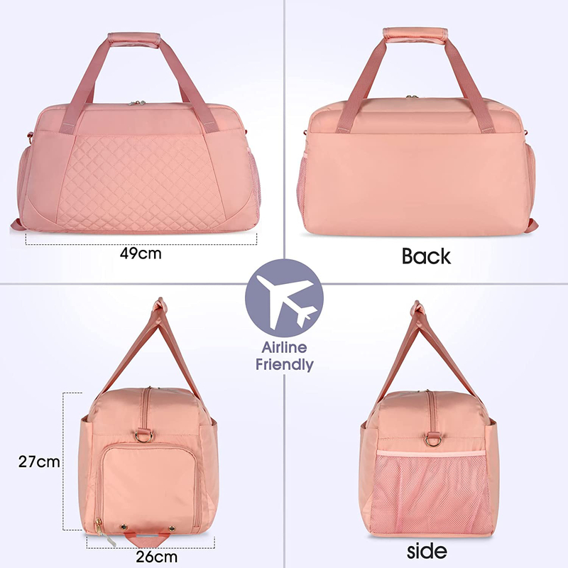 【DRY WET SEPARATE GYM BAG】 : Womens weekender travel bag delivers roomy main compartment to store your clean clothes and items. In addition, A zippered waterproof PVC lined pocket on the back for toiletries, wet clothes, towels and swimsuits, or cold drinks for avoiding leakage. Perfect for separating your wet and dry, clean and dirty stuffs.