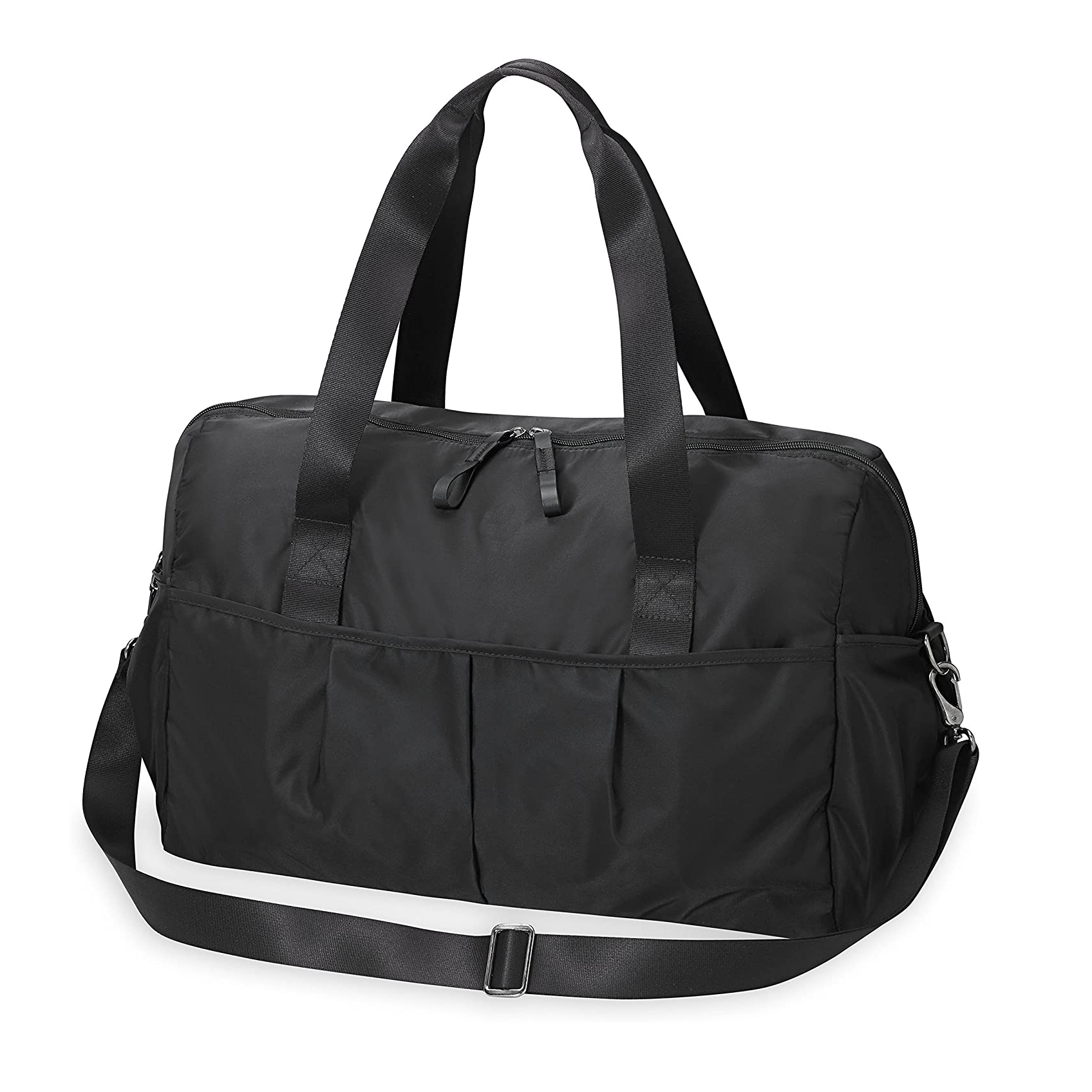 YOGA MAT BAG: Structured nylon bag with straps to hold up to a 6mm yoga mat.ROOMY DUFFLE BAG DESIGN: Large zipper opening for easy packing and storage making it great for the studio, gym, a trip across town or an overnight stay and everything in betweenPOCKETS: Exterior pockets are ideal for a water bottle, phone and other essentials while the interior pockets are large enough for an overnight bag, but lightweight enough for easy everyday use. DETACHABLE SHOULDER STRAP: Features a removable shoulder strap for added commuting comfort DIMENSIONS: 17.72" x 13" x 9.05" / Weight = 1.25lbs